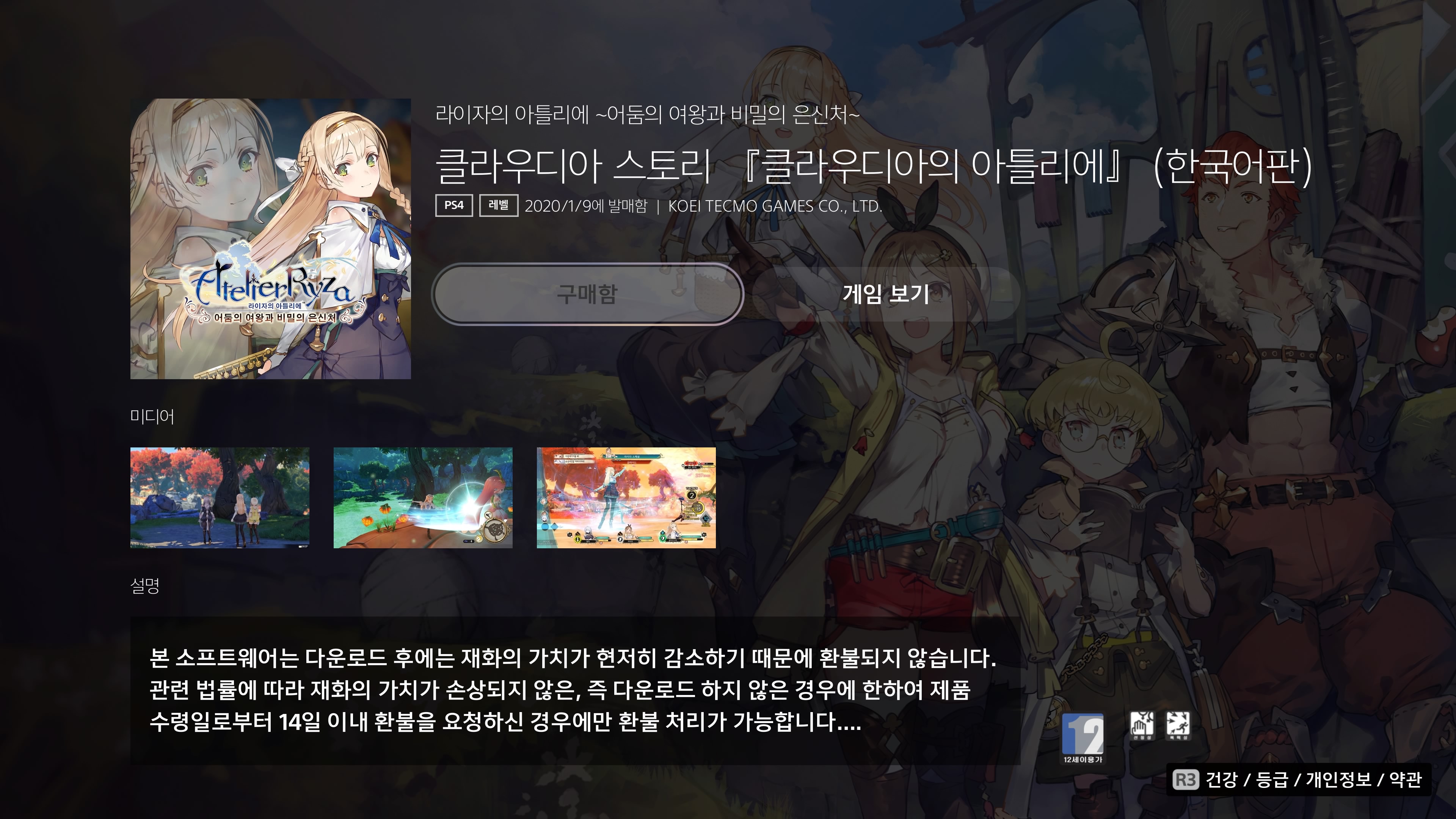 스토어에 클라우디아의 아틀리에 추가 에피소드가 있어서 바로 구매했다.